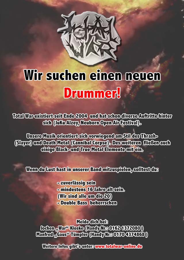 Wir haben wegen der Drummergeschichte ein kleines "Stellenausschreiben" verfasst.